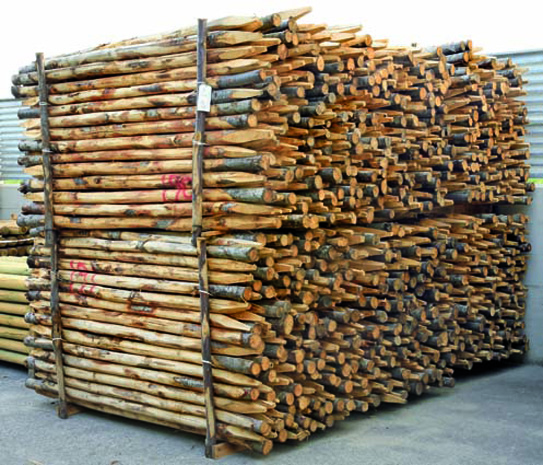 Pali di castagno scortecciati con punta.